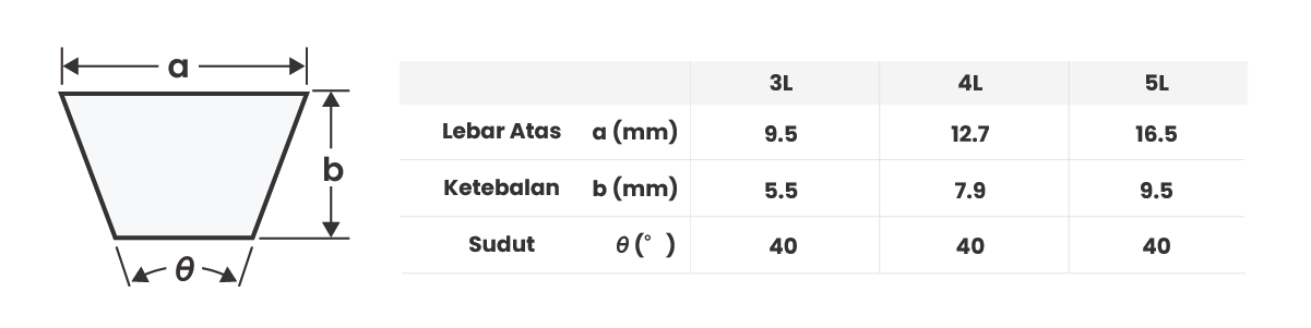 (1) Kain cover: Cutton dengan karet kloroprena(2) Cord: Poliester(3) Karet inti V: Karet kompon khusus