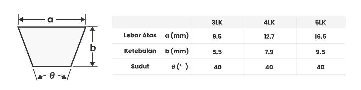 SUPER KB memiliki sabuk yang lebih tipis dan cocok untuk digunakan dengan idler pulley belakang.