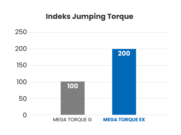 * Indeks adalah rasio MEGA TORQUE G dari produk kami.
